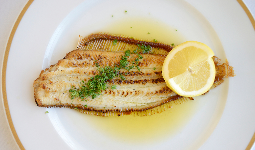 Enharina los filetes de lenguado y después fríelos en mantequilla. En la misma sartén, haz una salsa con mantequilla limón y perejil, y salsea los filetes.
