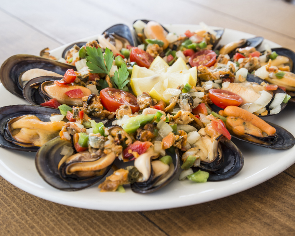 Mejillones con picadito de verduras