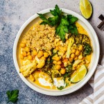 Basta con calentar antes de servir y añadir, si lo necesita, leche de coco para aportarle cremosidad en caso de que la haya perdido el curry de coliflor y garbanzos