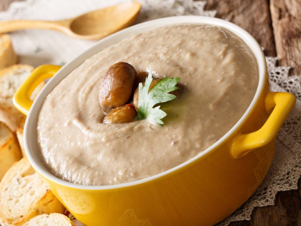 El hummus es un puré muy típico de la cocina de Oriente Próximo, donde habitualmente se elabora con garbanzos, ajo, aceite de pasta de sésamo y zumo de limón. Pero es tan versátil que también es posible sustituir el garbanzo por otro ingrediente parecido. Y las castañas, por ejemplo, son una opción única durante el otoño.