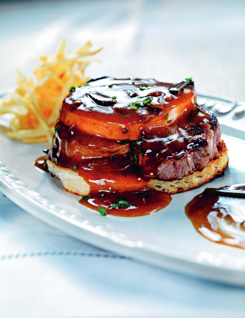 - Desglasa el fondo de la sartén con el vino, agrega el caldo y deja reducir a la mitad. Añade el resto de la mantequilla batiendo todo con las varillas hasta que quede una salsa homogénea.