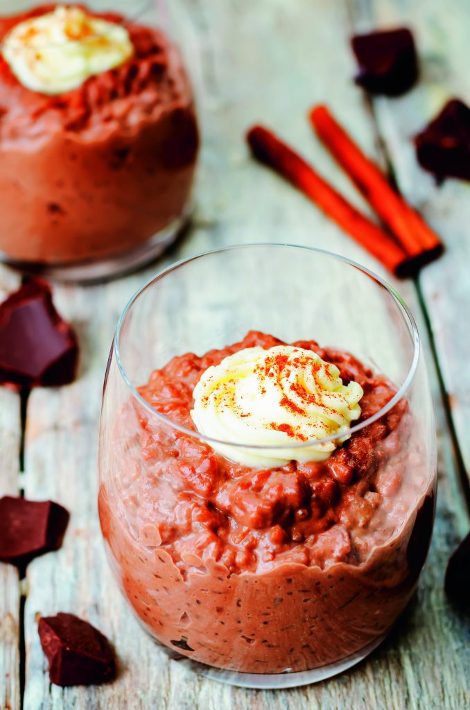 - Suma las pepitas de chocolate y remueve hasta que se derritan. Transfiere la mezcla a un bol o varios recipientes individuales. Deja enfriar durante 10 minutos y sirve.