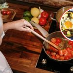 - Luego, ralla el tomate y mézclalo con los demás ingredientes. Vierte el caldo de verduras y el vino y deja cocer a fuego medio hasta que se ablande la chirivía