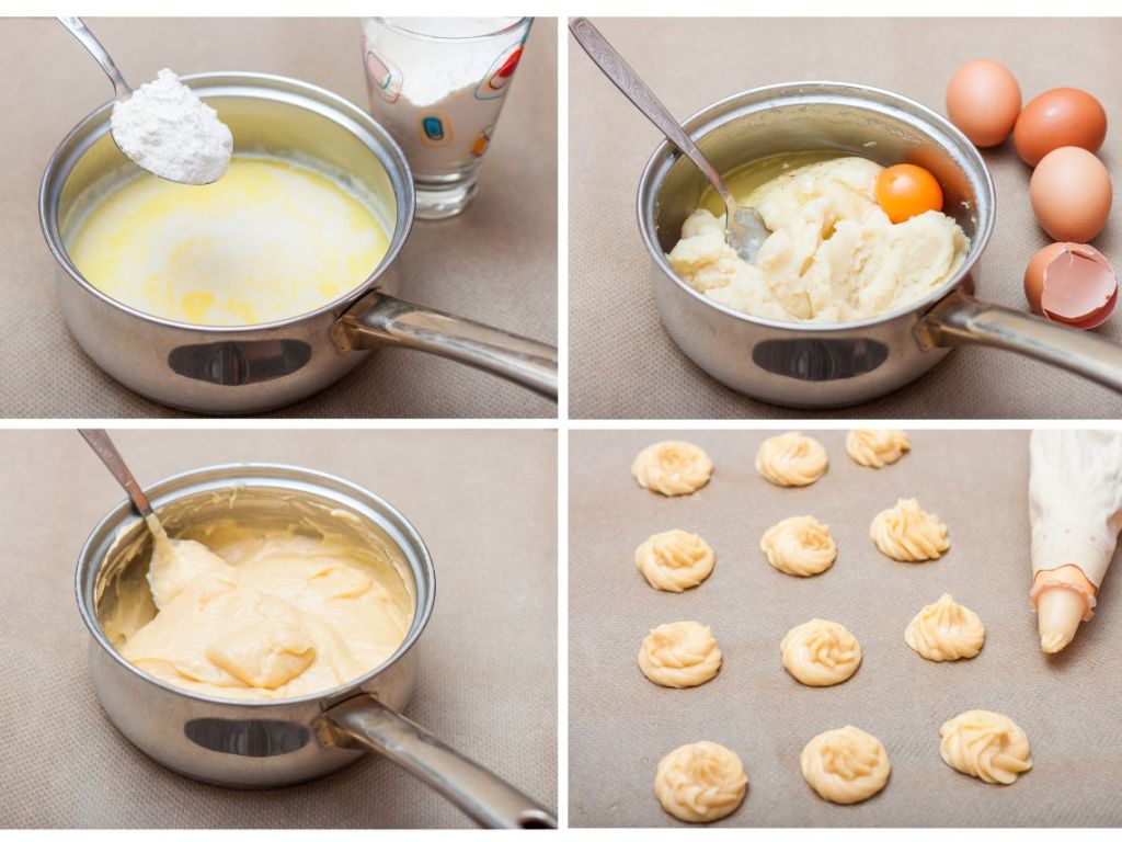 Para su elaboración, la harina se escalda en una mezcla de agua o leche y mantequilla hirviendo, un proceso esencial antes de añadir los huevos.