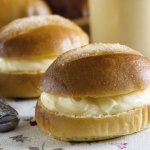 Cuando los bollos estén horneados y fríos cortarlos por la mitad y los rellenarlos con la crema de mantequilla o con la crema que más te guste