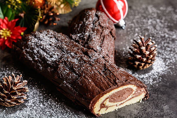 Inspirado en la forma de un tronco de árbol, este pastel es un homenaje a la naturaleza y a menudo se decora con elementos que evocan el invierno. Su textura esponjosa y relleno decadente lo convierten en el punto culminante de las festividades, y su presentación elegante agrega un toque especial a cualquier mesa navideña.