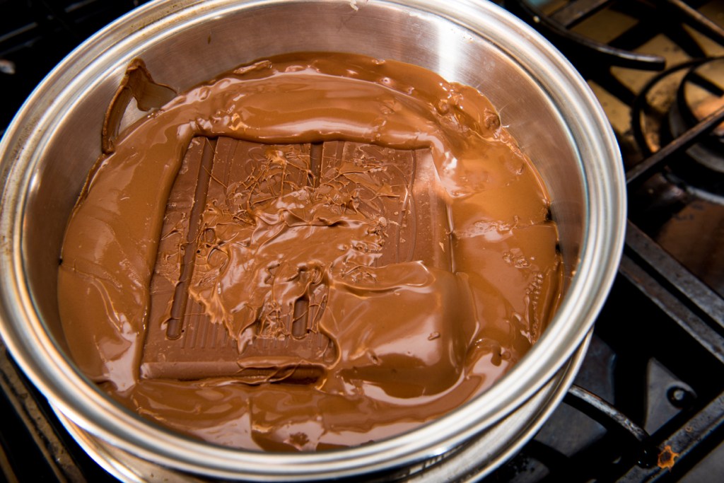A la hora de fundir el chocolate con la mantequilla, mucha gente lo hace al microondas. De esta forma es muy fácil pasarse y terminar quemando el chocolate, algo que nos dejará un sabor amargo y desagradable que ya no podremos combatir. Al baño María, es algo mucho más controlable, ya que no dejas de batir y vas viendo segundo a segundo cómo va fundiendo.