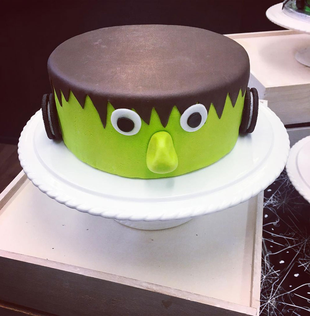 Este adorable Frankenstein de Pickfordandbow es el protagoinsta perfecto de la fiesta de Halloween. Hecho con fondant, da pena comérselo. Y triunfará.