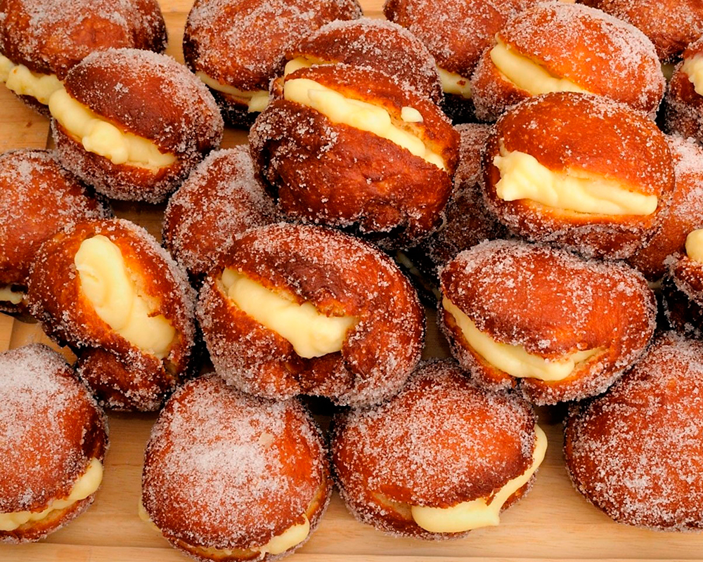 Llegamos hasta tierras germanas para recomendarte las berlinesas, un tradicional postre similar al buñuelo español y relleno de nata, crema o chocolate.