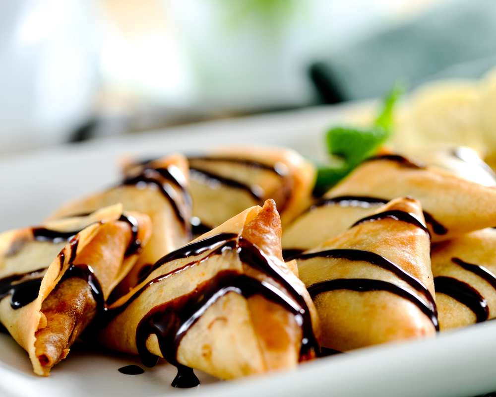 Nos vamos ahora a la India para decirte casi obligarte a que pruebes las samosas. Un plato que puede ser dulce o salado. en función de lo que incluyas dentro. Son unos triangulitos de masa frita que puedes rellenar con (en su versión golosa) plátano, chocolate y canela.