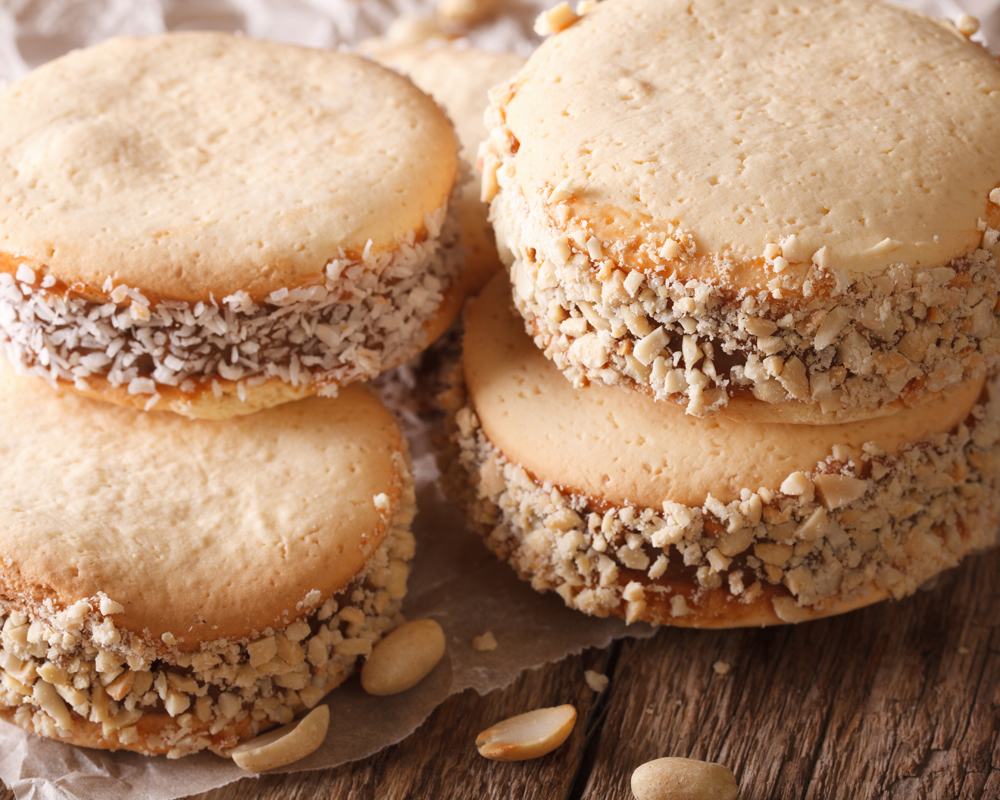 Desde lejos llegan los ricos alfajores hechos con base de galleta horneada y rellena al gusto.