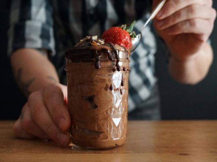 La mousse de cacao y aguacate es una deliciosa receta de cacao vegana, perfecta para combinar con fruta y disfrutar de una merienda dulce y saludable.
