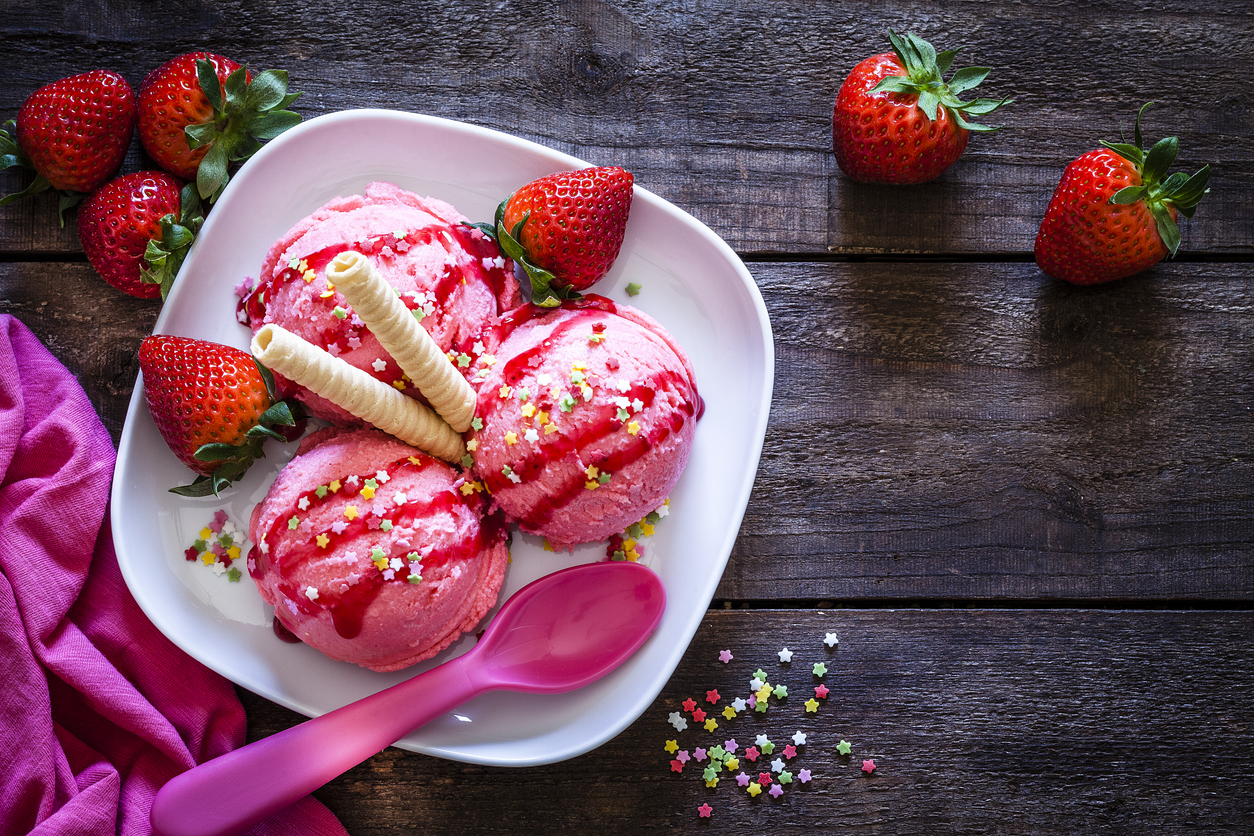 Por supuesto, el helado es unas de las opciones favoritas. Solo necesitas fresas frescas (congeladas) y yogur griego para hacer un helado casero en pocos minutos.