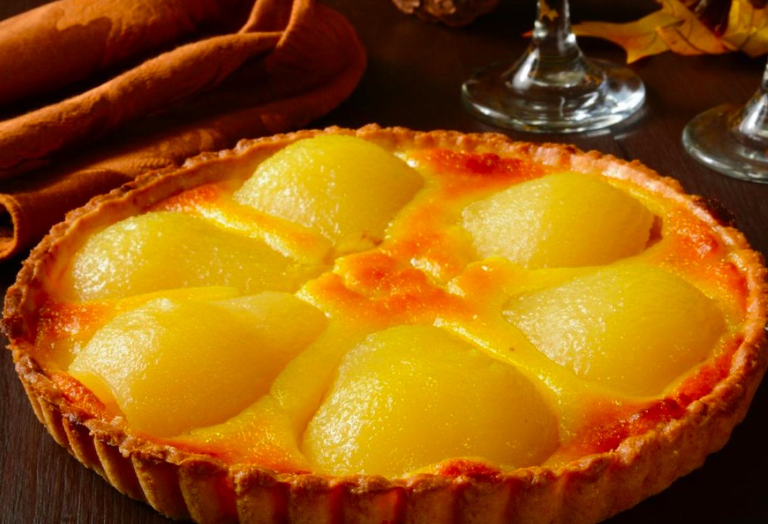 Tarta de pera confitada
