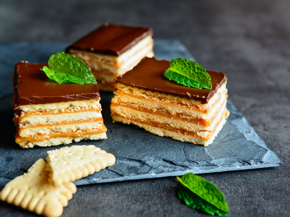 Utiliza galletas María cuadradas para elaborar esta tarta crujiente de galletas que incluye chocolate, café y brandy. Su sabor intenso te conquistará.