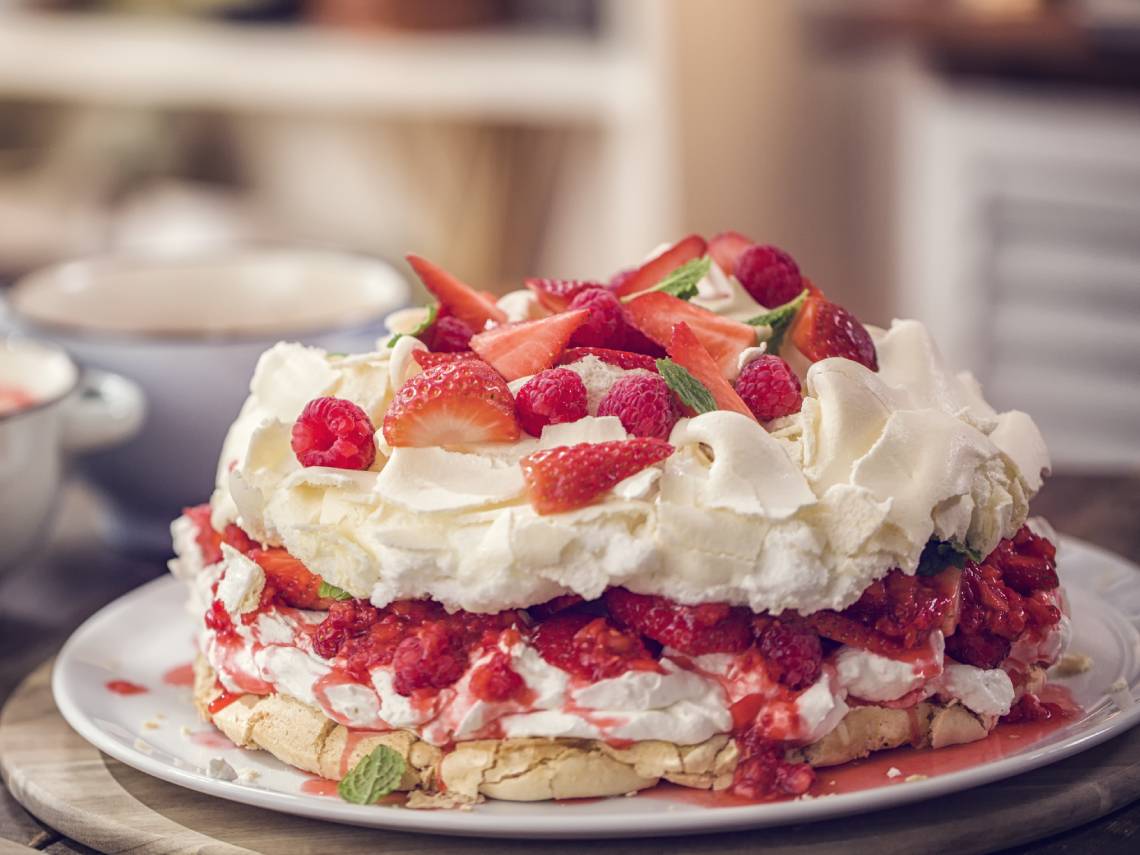 No está claro si su origen es Australia o Nueva Zelanda, pero lo que sí sabemos con certeza es que fue creada para la bailarina de origen ruso Anna Pavlova, de ahí su nombre. Esta tarta que australianos y neozelandeses suelen degustar en Navidad y fechas señaladas es muy sencilla de elaborar, pues no lleva más que una base de merengue, un relleno de nata montada en el interior y por encima fruta fresca, que normalmente son frutos rojos, ¡y ya está!