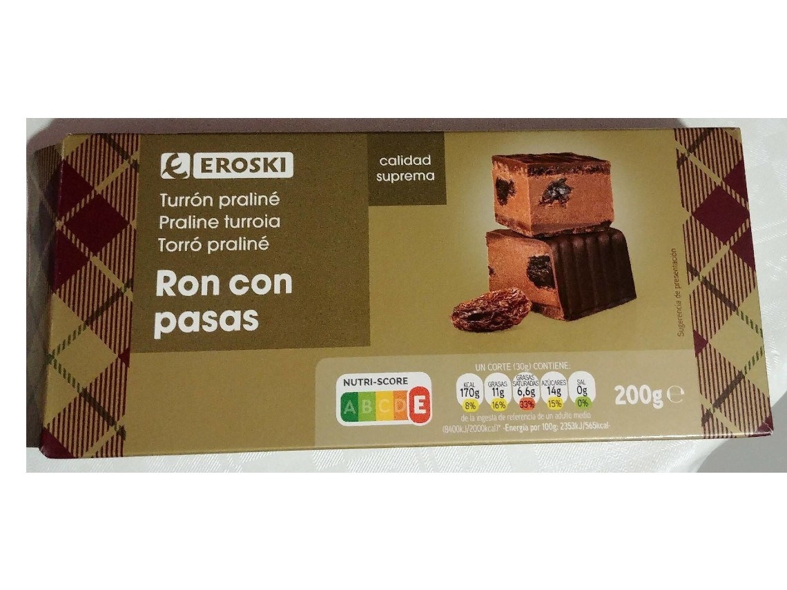Turrón praliné de ron con pasas de Eroski