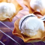 Al servir, depositar 1 bola grande de helado en cada tulipa y decorar al gusto (no las rellenes mucho antes, o se ablandarán)