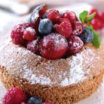 Repartir los frutos rojos en el centro del bizcocho de cacao