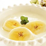 Poner en un cazo al fuego el azúcar y el plátano, pelado y troceado