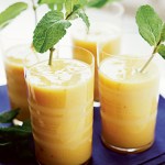 Pelar los mangos, trocear su pulpa y ponerla en el vaso de la batidora