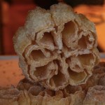 Cuando el aceite y el molde estén calientes, introduce el molde en la masa hasta que coja la forma de la flor