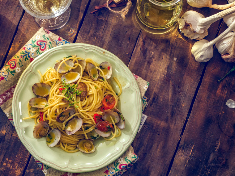 O dicho de otra manera, pasta con almejas, aunque al principio esta salsa típica italiana no las llevaba. Los ingredientes iniciales eran solo el aceite, el ajo, la pimienta y el perejil. Fue solo cuando comenzó a popularizarse este plato cuando se le añadieron las almejas. Puede llevar salsa de tomate, pero no es necesario.