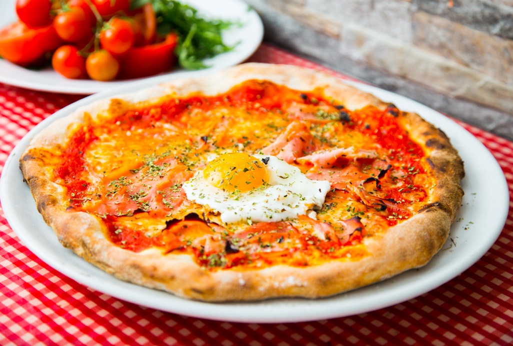Pizza con huevo frito