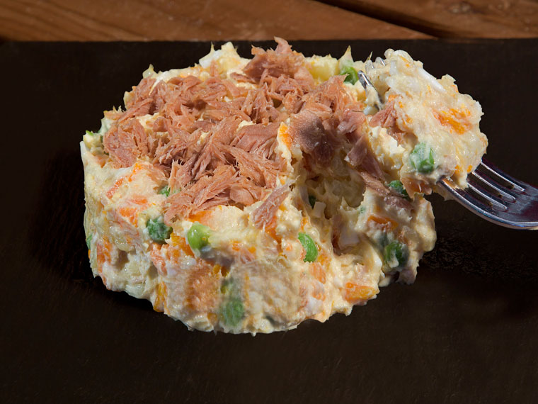 Después de chorrocientos años, la ensalada Olivier se ha transformado en lo que ahora conocemos como ensaladilla rusa y ya no es lo que era. Y sí, como hemos dicho, apoyamos las nuevas versiones deliciosas de esta receta, pero si quieres elaborar en casa una ensaladilla rusa tradicional, los ingredientes básicos son: las aceitunas, patatas, atún, huevo, zanahoria y la mayonesa. ¡Ni más ni menos!