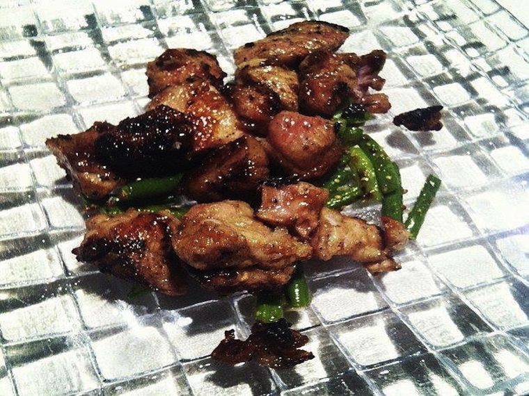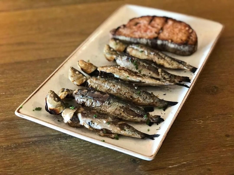 Vas a encontrar platos de todo el mundo para compartir, de la cocina catalana, francesa y asiática: atún escabechado con pimientos y tomillo; tacos de pollo satay con cilantro y menta; foie con melocotón, maíz tostado y crumble; brocheta de pulpo con panceta ibérica (en la foto superior); pincho moruno reposado con hummus y cúrcuma; arroz de 'cap i pota' y anguila ahumada; brocheta de ternera, cuscús con frutos secos y ají.Vallespir, 93, Barcelona.