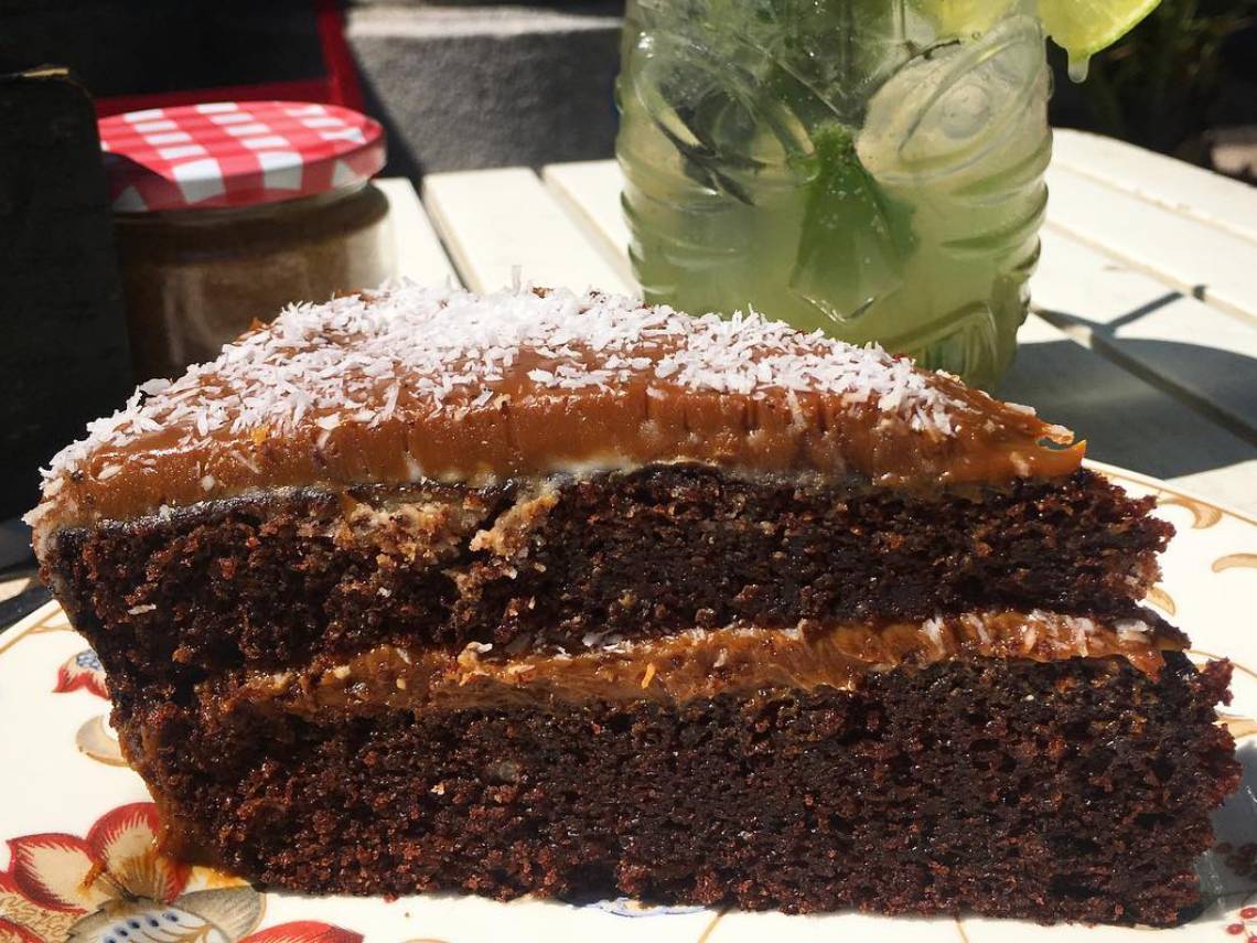 Bizcocho esponjoso de chocolate, dulce de leche y un toque de coco componen esta deliciosa tarta de Mür Café, una de las más ricas que podemos probar en la capital. El local está decorado con mucho encanto y puedes ir con tu perro porque tienen galletas y agua para él. Plaza Cristino Martos, 2.