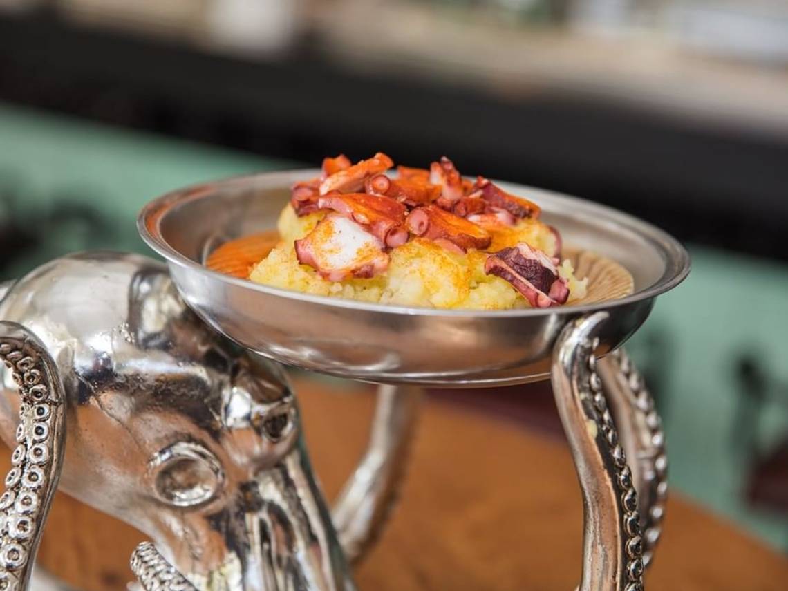 Bar Carallo es un trocito de Galicia en pleno barrio de Salamanca. Tratándose de un restaurante que rinde homenaje a la gastronomía gallega, no sorprende que el pulpo sea una de las estrellas de su carta. Lo preparan en varias versiones, siendo una de ellas el tradicional pulpo a feira al estilo de O Carballiño, pero también lo puedes probar a la brasa con patatas revolconas, mojo canario y aceituna kalamata o en una pizzeta de pulpo con coliflor y emulsión de aguacate. Dónde: Calle de Serrano, 42
