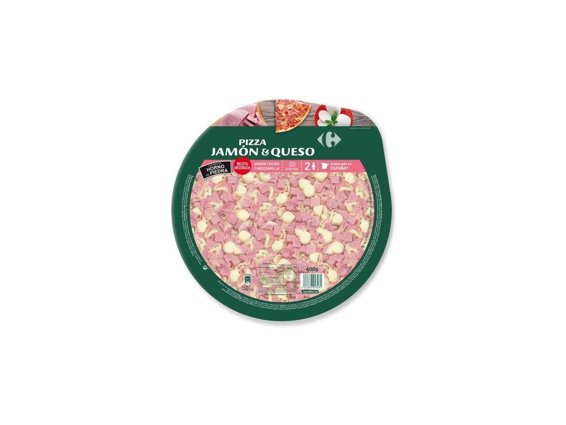 Las pizzas de la marca blanca de Carrefour las fabrica Palacios, por lo que no podían faltar en esta lista. En concreto, destacan la de Jamón y queso y la de Cuatro quesos.