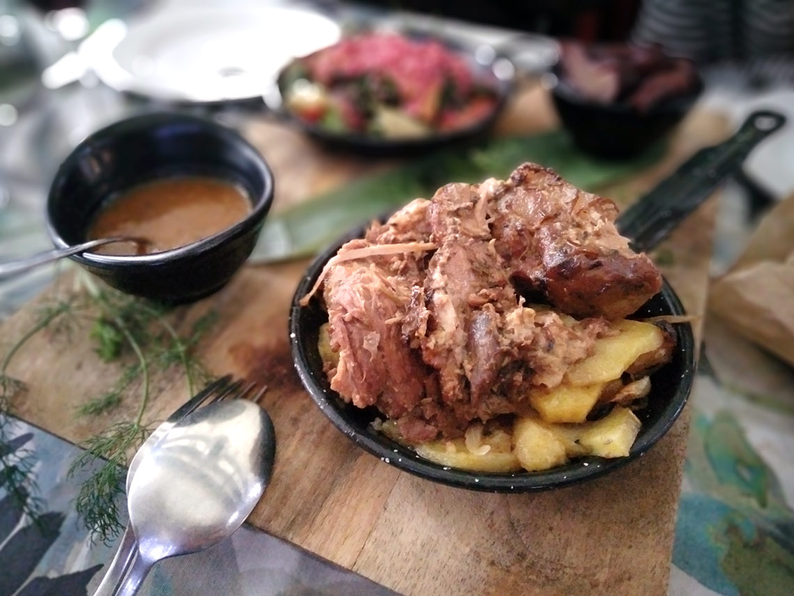 Una variedad de cerdo típica de la isla que estaba prácticamente desaparecida y que ahora se está recuperando. En los restaurantes de cocina típica de la zona podrás encontrarte algún plato con esta carne que tienes que probar. También son famosos los chicharrones: cortezas de cerdo fritas y empanadas den gofio.