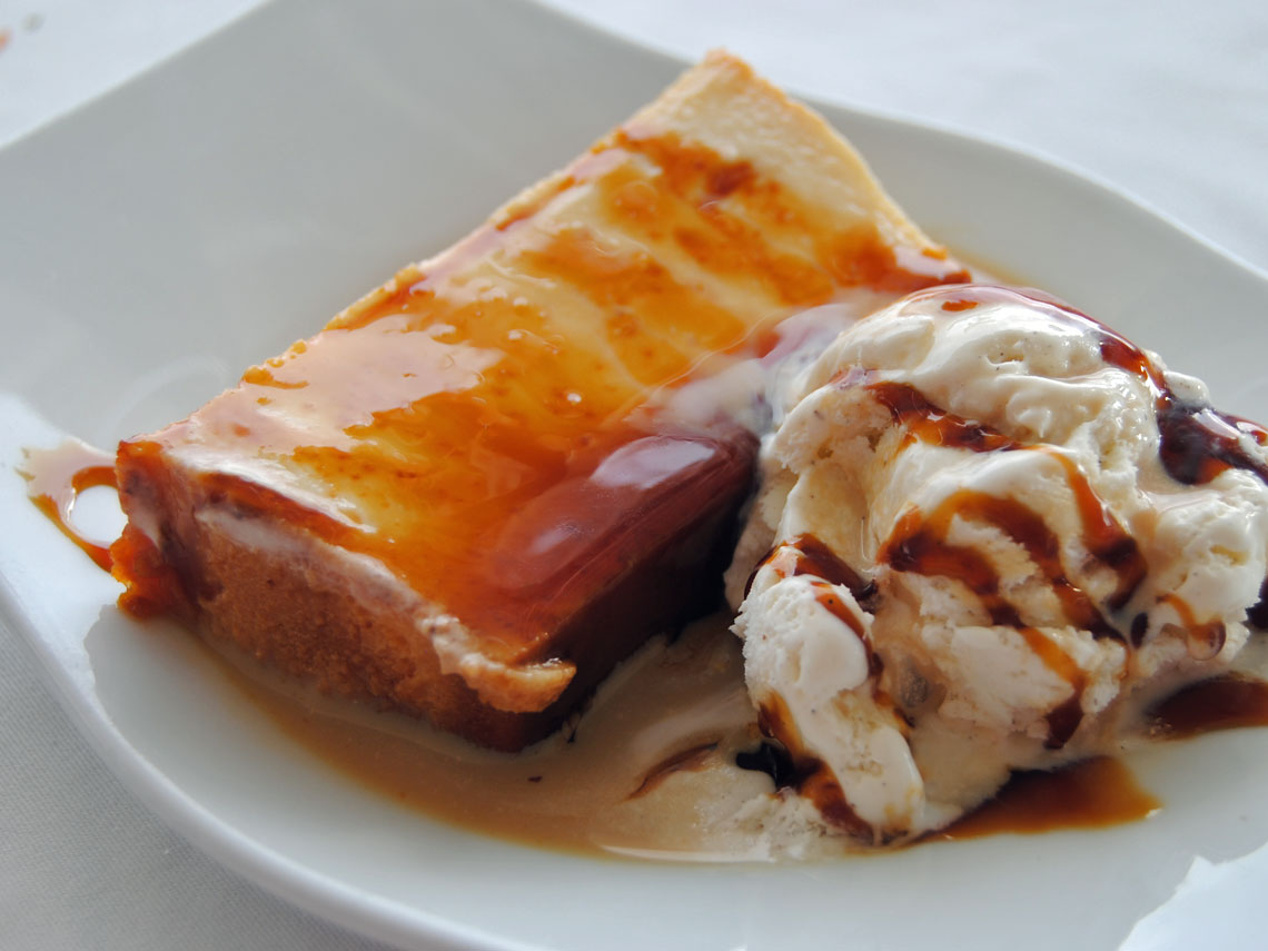 El quesillo es un postre típico de Tenerife que tiene textura de flan pero más densa. A pesar de su nombre no lleva queso, lleva leche condensada y se acompaña de caramelo líquido y de una bola de helado. Es un clásico de los sitios más tradicionales y un dulce que merece la pena probar.