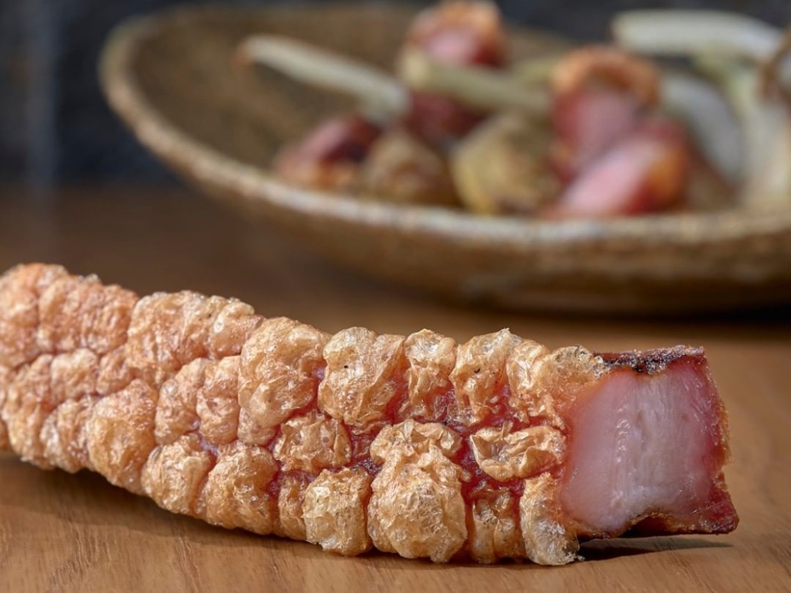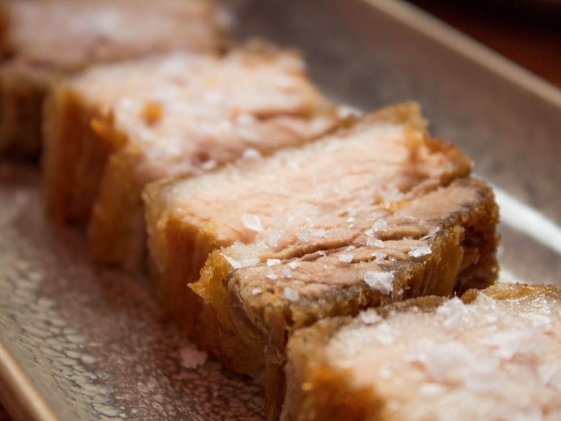 Para elaborar sus famosos torreznos, en Lakasa adoban la panceta, la orean durante unos días en la cámara, la asan en lonchas y la fríen a alta temperatura para que quede muy crujiente. Después, la filetean y la sirven acompañada de unas alcachofas confitadas.Dónde: Plaza del Descubridor Diego de Ordás, 1