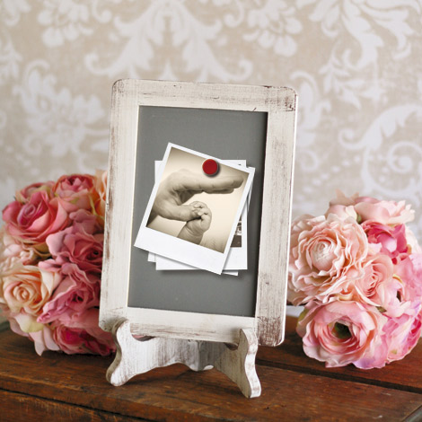 Para hacer la pizarra necesitamos: > Rodillo y pincel. > Pintura de pizarra. > Pintura magnética. > Tizas. > Pegamento caliente. > Pinzas de madera. > Imanes. > Tabla de madera. > Taladro y tornillos para fijar a la pared. > Marco vintage para mesa o para pared también.