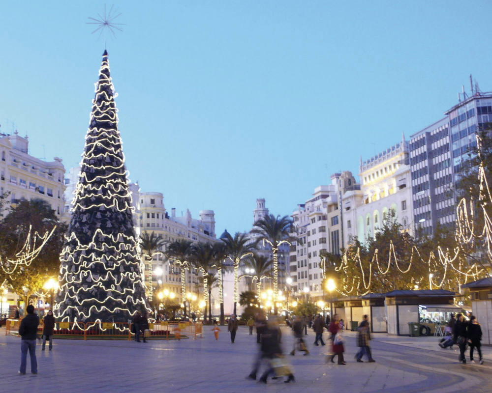Las calles de Valencia ofrecen un plan perfecto para disfrutar de la Navidad. Destaca la feria de atracciones que cuenta con una noria gigante y una pista de hielo para que niños y mayores se diviertan aún más. La Plaza del Ayuntamiento es el escenario central de las actividades y cuenta con una iluminación perfecta digna de fotografiar.