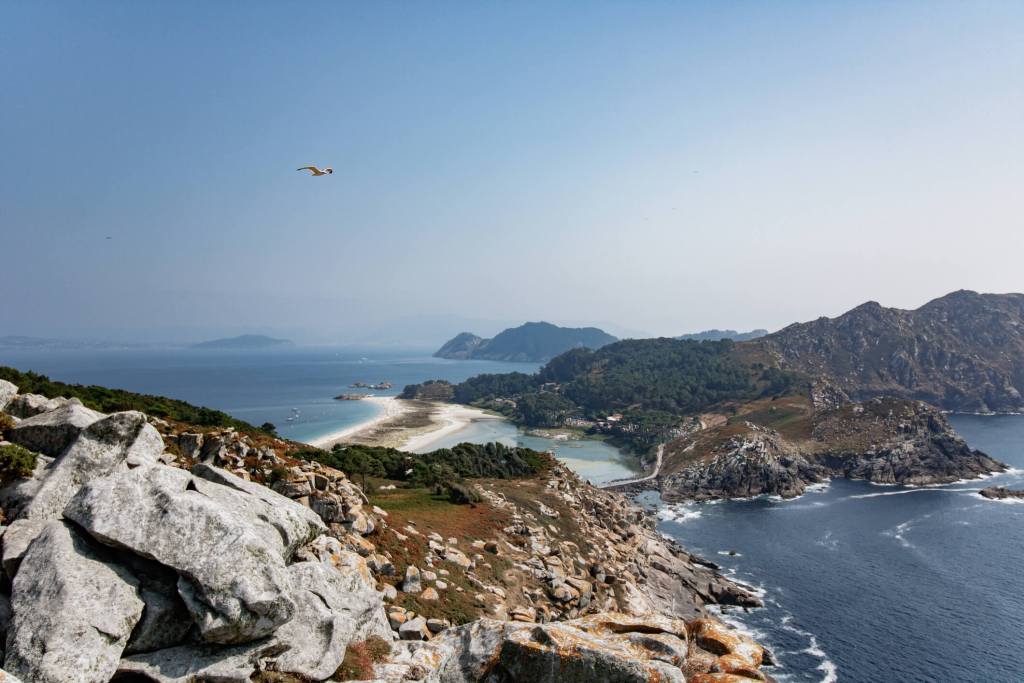 Sin irnos de Galicia también te recomendamos este paraje de playa en esta isla. Al estar situada en el atlántico, hace que las temperaturas bajen considerablemente con el resto de las costas de la península. En los meses de verano su temperatura media es de 20 grados.