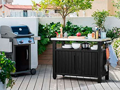 Para los amantes de las barbacoas al aire libre, nada mejor que este tipo de muebles para no tener que estar transportando los utensilios de cocina de dentro hacia afuera de la casa.
