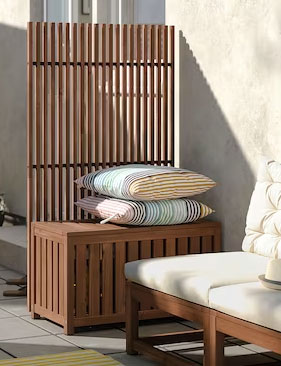 Solo hay que ver esta opción de Ikea, con la que conseguir más intimidad en tu jardín o terraza, pero que a su vez es clave para guardar objetos como cojines, además de servir como asiento y de mesa (159,98 euros).