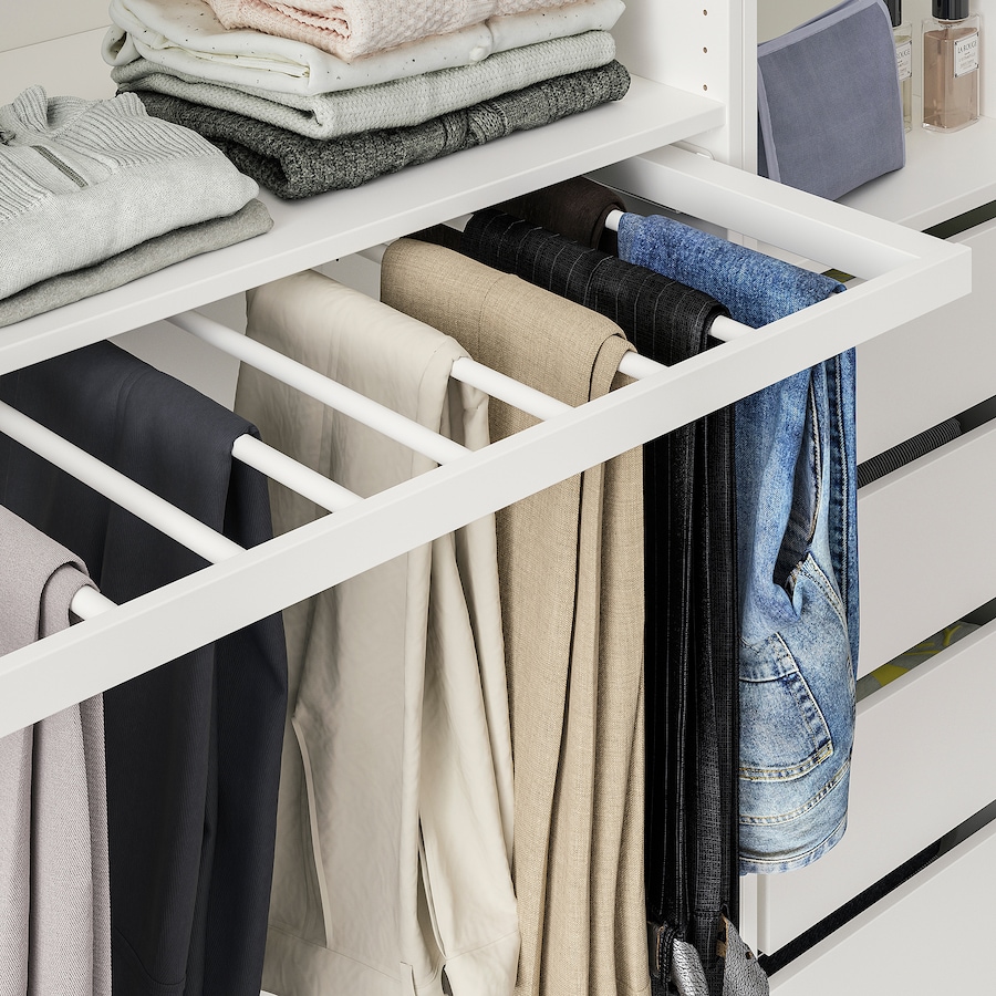 Es un módulo extraíble provisto de tubos para colgar los pantalones. Se desliza hacia fuera para seleccionar las prendas.
